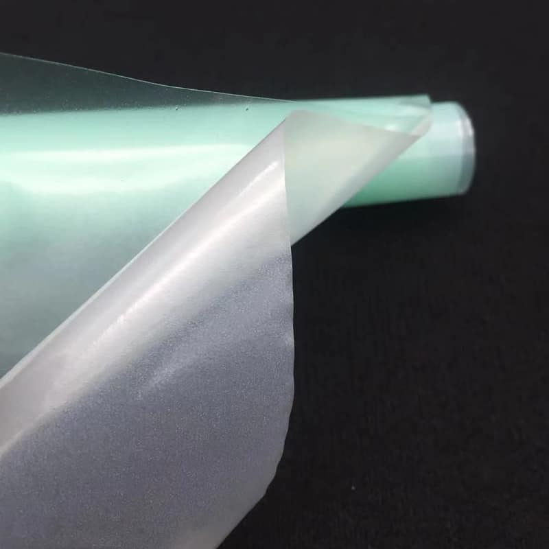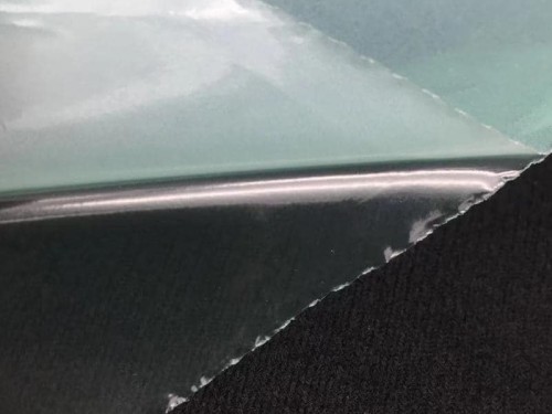 產品形態:薄膜+PE,表面為霧面,熱貼合后呈透明的狀態。